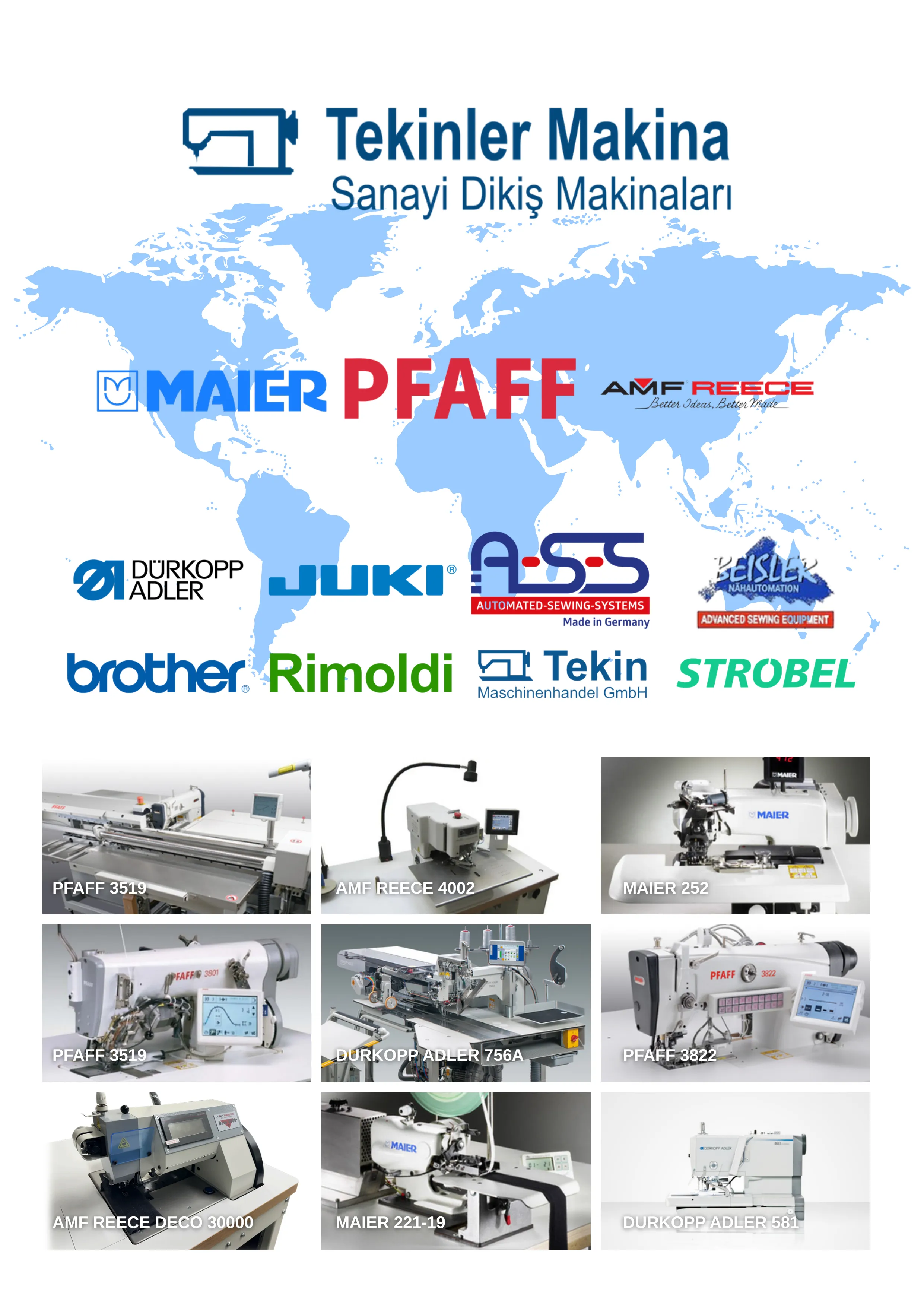 Tekinler Makina 1984 yılından bugünümüze konfeksiyon & tekstil, takım elbise, branda, deri, mobilya & koltuk sektörlerine yönelik yeni ve kullanılmış sanayi dikiş makinesi alım ve satımını yapmaktadır. Kullanılmış dikiş makinesi sektörünün dünyanın en büyük kuruluşlarından olan şirketimizin merkez Almanya'da bulunan depolarımızda 10.000 üzerinde yeni ve kullanılmış sanayi dikiş makineleri ile siz müşterilerimize hizmet vermekteyiz.